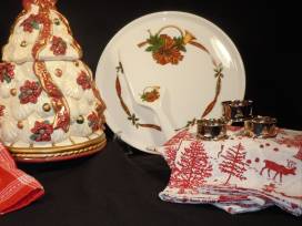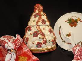 - Heirloom Collection ceramic decorated holiday 11" Cake Plate and ceramic Server