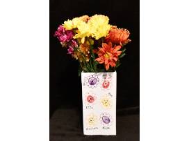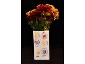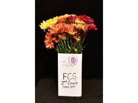 This delightful one-of-a-kind tall vase displays the 2nd Grade students' thumbprints as bright flowers along with the names of the students. The teacher and school year are also displayed. Use as a vase or container. This is sure to be treasured for years to come.
