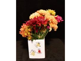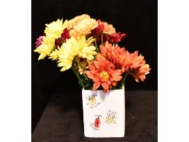 Adorable! Ladybug and bumble bee thumbprints of the Junior Kindergarten class decorate this vase. Includes the names of the students and teacher, and the school year.