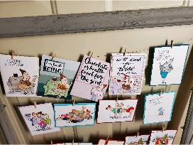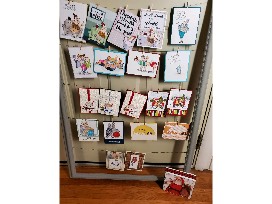 Twenty beautifully hand made note cards for all occasions- humorous, wine lovers, pet lovers and holiday. And 6" x 6" chunky decorative Santa canvas.