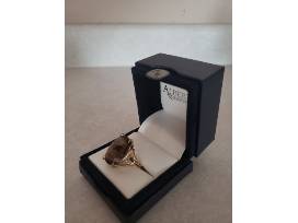 1Lady's cocktail ring is 14K yellow gold with oval faceted 14 Cts. Smoky Quartz set in 4 prong integrated head. A lovely gift for a special someone - even if that someone is yourself!