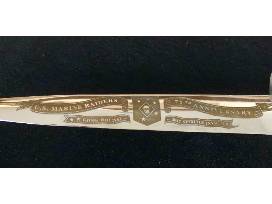 Earn this limited edition (only 300 created) 75th Anniversary U.S. Marine Raider Stiletto, custom built with the authorization of the Marine Raider Association in honor of the 75th Annivesray of the founding of U.S. Marine Raiders. This is stiletto number 45 of 300 (certificate of authenticity included). Stainless steel blade, pewter hilt. Comes in glass display case with 2 Marine Raider Foundation challenge coins and 1 custom coin commemorating the Marine Raider lineage being adopted by Marine Corps Forces Special Operations Command (MARSOC).