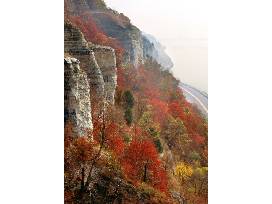 The picture captures a view of the Mississippi River and Bluffs during Autumn on the Great River Road near Alton, IL.