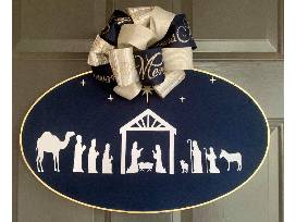 You'll be decking the halls and baking holiday cheer with this phenomenal holiday set of a hand-sewn apron by HCA board member Sr. Susan Marie Krupp, cookie goods, a ceramic casserole dish, Joy Mariposa wine stopper, a gorgeous wreath by Karen Stolarski/The Queen's Hands; lovely Nativity by Elfi Schuck/Oopsy Daisy Creative Boutique, and Christmas count-down and wine cups by Colleen Lynch/Lemon Drop Designs!