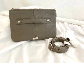 Dark Beige and Snake Print, Two Zipper Handbag, with up to 54" clip-on shoulder strap. 9"x6"x2"empty, up to 4" wide when full. https://www.mythirtyone.com/us/en/