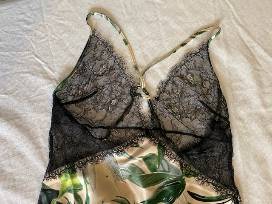 Victoria's Secret PJs, Black, Green, & Blush, Greenery Pattern on Silk Cami and Skirt Set. Size Medium. NWOT.