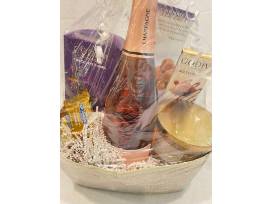 Enjoy a sweet treat consisting of Champagne, Godiva Chocolate Domes, Godiva Masterpieces, Belgian Chocolate Sea Salt Carmel Thins, Ghiradeli Carmel Milk Chocolate, and a Sugar + Sweet Soy Blend Candle. *Local Pick Up Only, 21+ Only*
