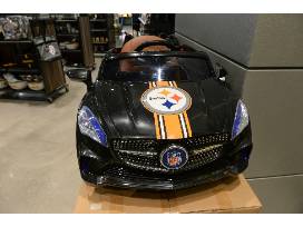 Pittsburgh Steelers Ride-On Youth Car for ages 3-8 , 12 V, 3 Speed, one button start, manual but includes a remote control for parents. Has speakers with 8 preset songs. Donated by Party Animal Brand