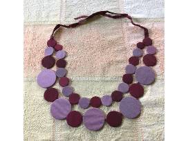 Striking Cambodian handmade silk disk necklace in hues of purple. Beautiful accent for any outfit or as a Christmas gift.