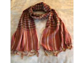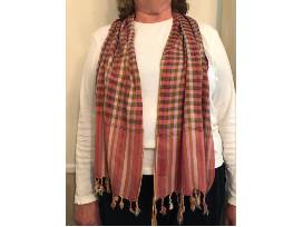 Handmade Cambodian cotton scarf in shades of pink and beige from Cambodia (12"x58") beautiful accessory for any outfit or as a Christmas gift.