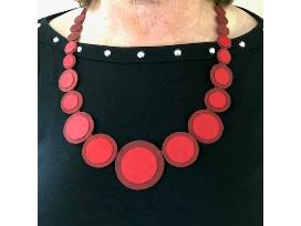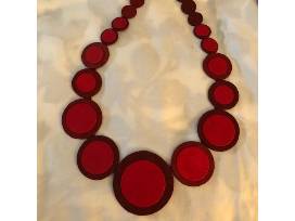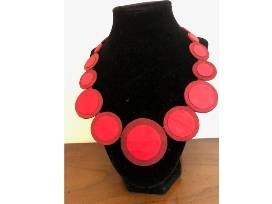 Striking Cambodian handmade silk disk necklace in hues of red. Beautiful accent for any outfit or as a Christmas gift.