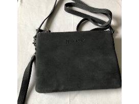 This very stylish 2-zip compartment soft suede grey leather purse comes with a middle magnetic snap pocket, removable shoulder strap, detachable wristlet strap 8 ½" x 6 ½".
