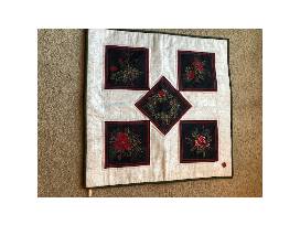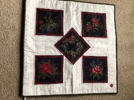 Custom made holiday/winter wall hanging or tabletop quilt by area quilterJanice C. Reif. This is a 25" square.