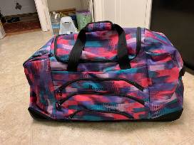 This colorful 28 inch rolling duffel bag won't be mistaken by someone else at the airport luggage carrousel. Made by "itluggage", it features multiple zippered pockets on the outside and large capacity inside. It weighs less than eight pounds. This is perfect for travel or to send your graduate off to college.