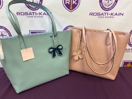 No matter your outfit this spring, one of these pastel color purses will complete your look. One is light blue and the other is light pink.