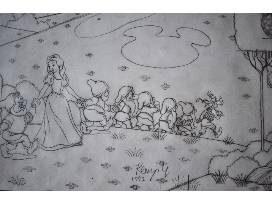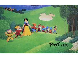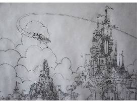It was Kenny's lifelong dream to work for Disney, growing up in small town Lodi, California. He finally realized that dream when he submitted his portfolio to Disneyland Collateral Creative Department in 1992 and got a chance to do his first assignment. Kenny was hired to design this poster to commemorate the opening of Euro Disney near Paris, France. Kenny worked with Disney Legend Charles Boyer, who drew the initial layout, which Kenny took and drew this final concept sketch and the subsequent final airbrush painting.