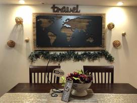 With all the international travel that SDARL offers, it is appropriate that a beautifully handcrafted world map made of reclaimed wood gets showcased for bidding at the auction. This industrial reclaimed wood art piece is for the adventurer in all of us and comes ready to hang, sure to keep you dreaming about your future travels. This piece measures 52" x 28"