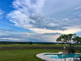 Come relish the Texas Hill Country with a weekend stay at Granite Ranch, a 500-acre guest ranch with sweeping views of Enchanted Rock and the Willow City Loop. The 4,000-square-foot Great House boasts rustic ranch decor and a gracious atmosphere. The modern kitchen has views of rolling fields and makes cooking a pleasure. Relax in the airy, sunken den with a soaring limestone fireplace and pool table, or read your book in the sunny porch room. Three luxurious bedrooms are perfect for families or couples, and a comfortable bunk room can hold four singles or kids. The Master Bedroom features a covered porch and full bath. Good dogs are welcome with pet deposit. Fri-Sun, 4pm checkout