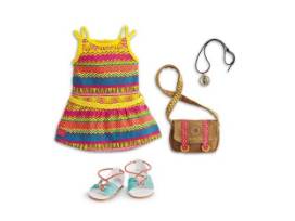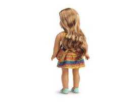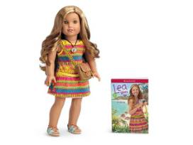 Meet Lea Clark (Originally priced at $120), the 2016 Girl of the Year. She dives in to new adventures and explores what's in her heart. The 18" Lea doll has warm hazel eyes that open and close, and long, light-brown wavy hair with sun-kissed highlights. She has a huggable cloth body, and her movable head and limbs are made of smooth vinyl. She comes with the Lea Dives In paperback book, plus her Brazilian festival outfit: