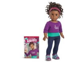 Meet Gabriela (Originally priced at $115), the 2017 Girl of the Year?! She's a true talent who gets creative for a cause. The 18" Gabriela doll has warm brown eyes that open and close, and curly dark-brown hair. She has a huggable cloth body, and her movable head and limbs are made of smooth vinyl. She comes with the Gabriela paperback book, plus her signature outfit: