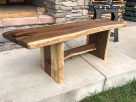This beautiful handcrafted bench comes from Northern Flicker Woodworks and Construction, LLC. The Black Walnut bench is crafted from trees grown and milled in the Bitterroot Valley, making this bench an incredibly rare and beautiful piece of furniture.