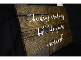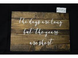 This handmade sign by Hazel Designs features "The days are long but the years are short".