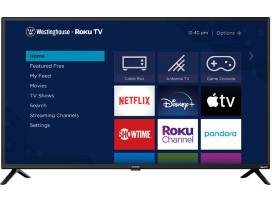 43-inch Westinghouse 4K Roku TV has smart features that access your favorite streaming services. 4K resolution brings out the detail in movies and shows. 4K Roku TV lets you select content using voice commands and stream audio from music services.