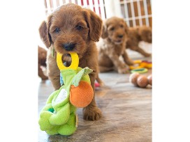 FarmerDoodles has been breeding Goldendoogles for 15 years and adheres to the highest standards. Their focus is to create healthy, confident, easy to train companions compared to the average dog. To accomplish this, they start with the best parents who have great temperaments, are well socialized, and that have been extensively health tested. Each puppy works individually with the trainers starting at 4 weeks of age and temperament is done by trainers at 7 weeks of age.