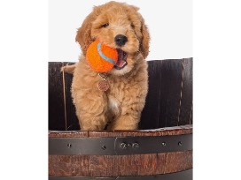 The Goldendoodle breed pairs the sweetness of the Golden Retriever with the brains of a Poodle which results in an easy to train, fun and sweet companion with little to no shedding.