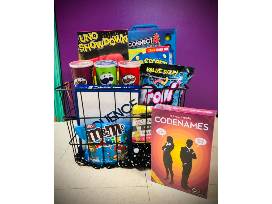 YARDZEE!, sweet and salty snacks, Uno Showdown, Connect 4, Codenames, TacoCatGoatCheesePizza, Sequence.... all the fun and games you need for a great game night with the family!