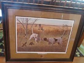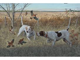 National Wild Turkey Foundation Matted and Framed Print of the "Hedgerow Covey" by David Lanier. Measures approximately 36"W X 28"H.