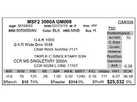 Here are the only sexed heifer embryos on the sale! The Black Hawk daughters have been beautiful and this mating with GM008 is a can't miss! Produce your next donor right here! Mating EPDs: 161 API, 89 TI, $382$Ranch and a $24991 $Profit!