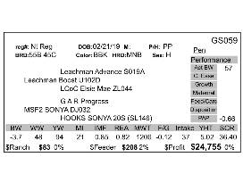 These embryos are the best of the sale in my opinion!!! GS059 is out #2 $Profit Stafemale, she has great looks and flushes great! She's sired by our herd sire, Leachman Boost U102D. This mating with Docs Remedy will be a home run! Docs Remedy just sires the two high selling bulls at the Leachman Spring sale at $32000 and $30000! Buy these embryos and you will be sure to have some of the highest $Profit calves to hit the ground in 2021! Mating EPDs: -3.3 BW, 93 YW, .74 IMF, .97 REA, -1 Intake, $83 $Ranch, $215 $Feeder, and a freaky hig $25043 $Profit!
