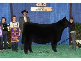 This powerful purebred was bred at Goettemoeller Show Cattle, IN, and selected as the Calf Champion Female of both the junior and open shows at both the American Royal and the North American International. She is a full sister to the Chamberlin family's Win Dixie 8B that as the most decorated Maine-Anjou show heifer of the 2014-2015 season when she won the both calf divisions at the American Royal and the NAILE and went on to be Grand Champion of the 2015 American Royal Open Show and Reserve Champion of the Junior Show before she was Grand Champion of the NAILE Junior Maine-Anjou Show and Reserve Champion of the Open Show.