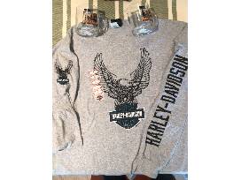 Two Glass Fresno Harley Davidson Mugs and one large long-sleeved logo shirt.