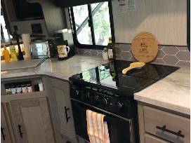 Deluxe Glamper - The Deluxe Trailer is perfect for 2 people. The room features 1 amazing & comfortable queen size bed, luxury bath and bed collection, fridge, microwave, stove, and oven.