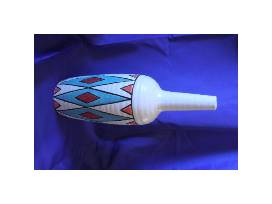 Large white clay vase with turquoise. red. and orange geometric pattern from The Outlet.