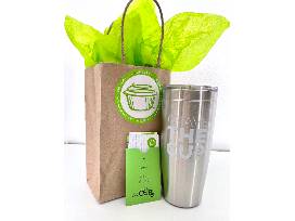 Needing something to curb your sweet tooth? This package is for you! Enjoy a $25 Gift Card to the Cup and a silver Cup reusable tumbler!