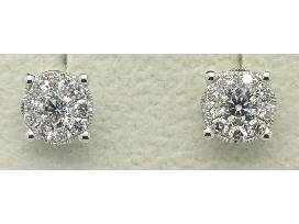 Leo handpicked these 14 karat white gold round diamond halo earrings. .57 carat total weight. Valued more than $3,200