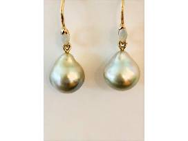 1The perfect set for summer! Tahitian pearl pave diamond "Pussy Willow" pendant in 14K gold and and Tahitian pearl drop earrings with opal marquise both hand crafted by Kimberlin Brown Jewelry.