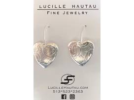 "Warm Hearts" are a pair of sterling silver hearts with forged wires. Light weight. Designed and handcrafted by local artist Lucille Hautau. A Sunshine polishing cloth is included to maintain the earring's bright finish.