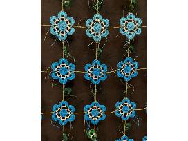 This unique and eye catching wall hanging is made of aluminum can pop tabs that are crocheted together with thread.