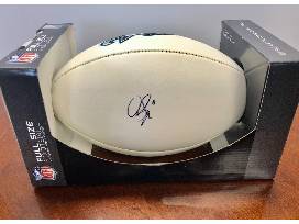 This is a rare item. You may not find another Gardner Minshew Eagles autographed football anywhere! Gardner Minshew, back-up quarterback for the Philadelphia Eagles, made a BIG splash when he started the game against the NY Jets in the 2021-2022 season. Facing the New York Jets, Minshew completed 20 of 25 passes for 242 yards and two touchdowns, lifting the Eagles to a 33-18 finish. He had a perfect 158.3 quarterback rating through the first half of the game and tied Donovan McNabb with a 93.3 percent first-half completion rate, the highest by an Eagles quarterback in 30 years.