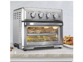 This unique kitchen workhorse is actually a premium full-size toaster oven with a built-in air fryer. That means it not only bakes, broils, and toasts, it also lets you air fry right inside the oven. Air frying, which uses powerful ultra-hot air, is a healthier way to prepare delicious fried favorites, from wings to fritters to fries to shrimp. And since toaster ovens stay on the countertop, this fryer doesn't have to move back and forth, from cupboard to counter!