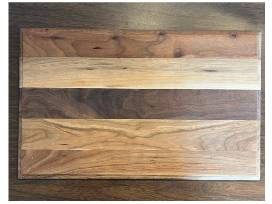 Handcrafted by students in Mr. Berdis' woodshop class, also known as The Pathway Chippers, this board measures 10" x 15" and is made from premium walnut, cherry, and maple wood.