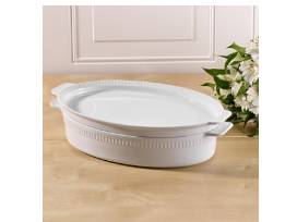 Whether you're serving up a family favorite or entertaining guests, this durable oven-to-table lidded baker from Better Homes & Gardens saves you time by letting you mix, bake and serve in the same dish that's pretty enough to set out on the table. This baker is also multi-purpose because you can use the lid to serve other dishes as well. Made of high-quality, high-fired, long-lasting porcelain which resists chips, scratches, and stains; oven, microwave, and dishwasher safe.