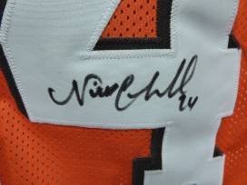 Cleveland Browns Running Back Nick Chubb signed orange Cleveland Browns jersey, complete with JSA certification.
