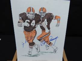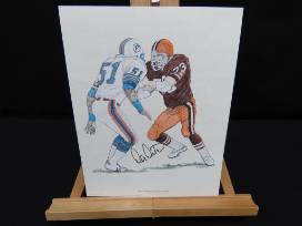 Set of 6 Cleveland Browns signed color 10x14 sketches autographed by Browns Legends Brian Sipe, Greg Pruitt, Reggie Rucker, Dave Logan, Doug Dieken, Joe DeLamielleure and unsigned illustration of Lyle Alzado. * All Photos Unframed