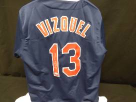 Baseball great Omar Vizquel signed dark blue jersey, complete with JSA certification.