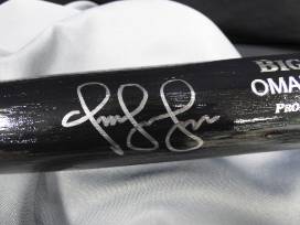 Baseball great Omar Vizquel signed full sized black bat, complete with GPA hologram certification